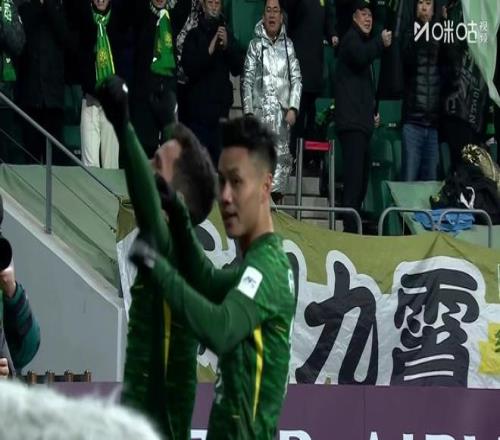 尾聲階段,國安門前風聲鶴唳,對手兩連射先是擊中橫梁彈出,補射又被柏楊擋出,隨后對手的頭球攻門再次被張健智撲出。